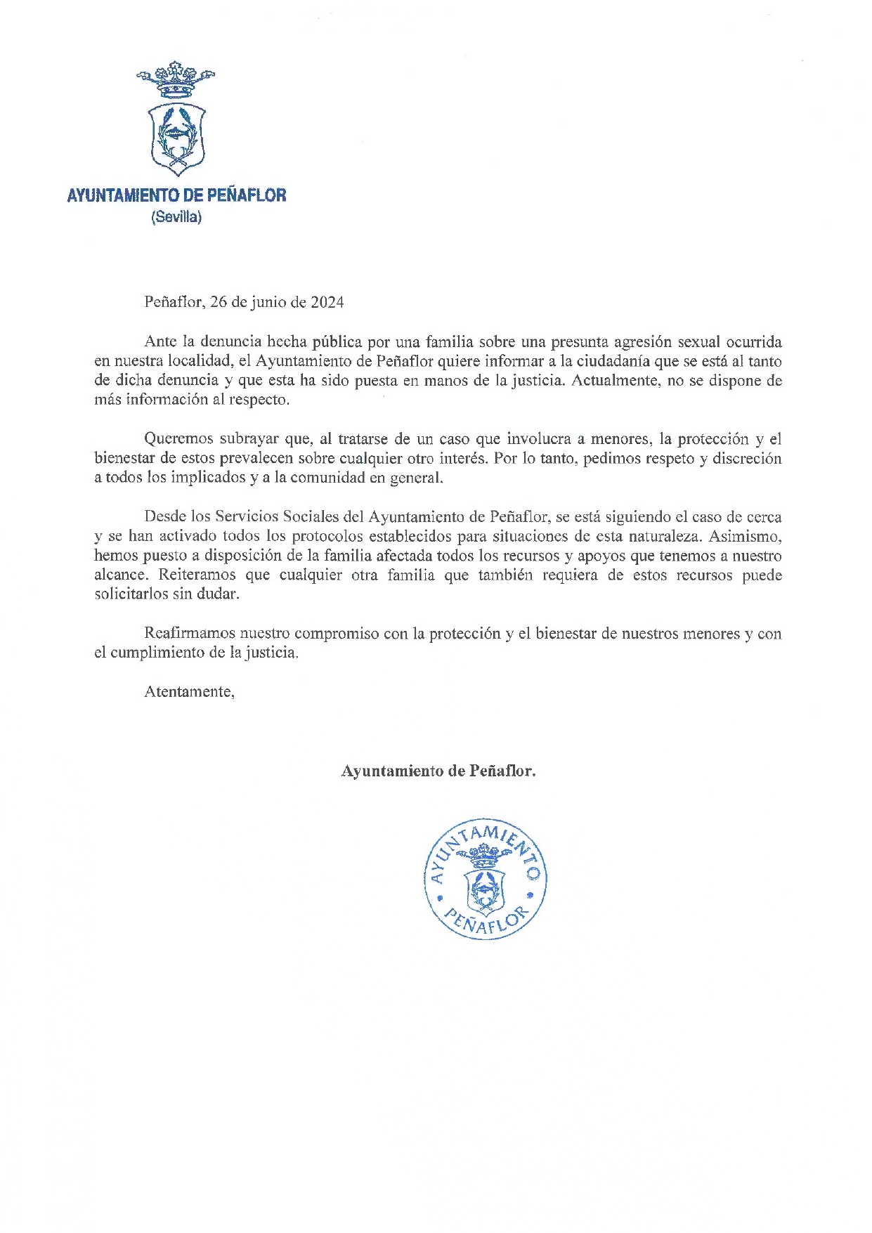 COMUNICADO DEL AYUNTAMIENTO DE PEÑAFLOR